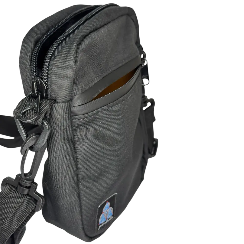 Carriel Pentada Negro // material: Lona, 100% nylon //medidas; alto: 20 cm, ancho: 16 cm // tres bolsillos, dos frontales uno posterior // dos bolsillos internos en compartimiento principal // marca bordada en el frente // reata con hebilla ajustable // Ornamento diseñado por patinadores y fabricado en Colombia // Costal de Anzuelos Skateshop // 111161 // envíos seguros a todo Colombia // Skateshop Onírico.